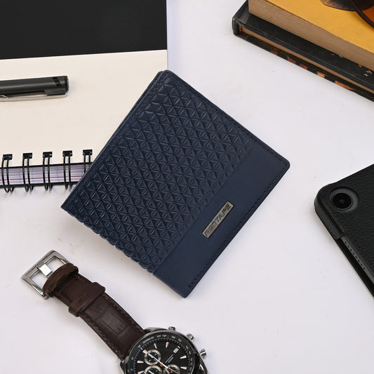 Navy Bi-Fold Leather Wallet for Men